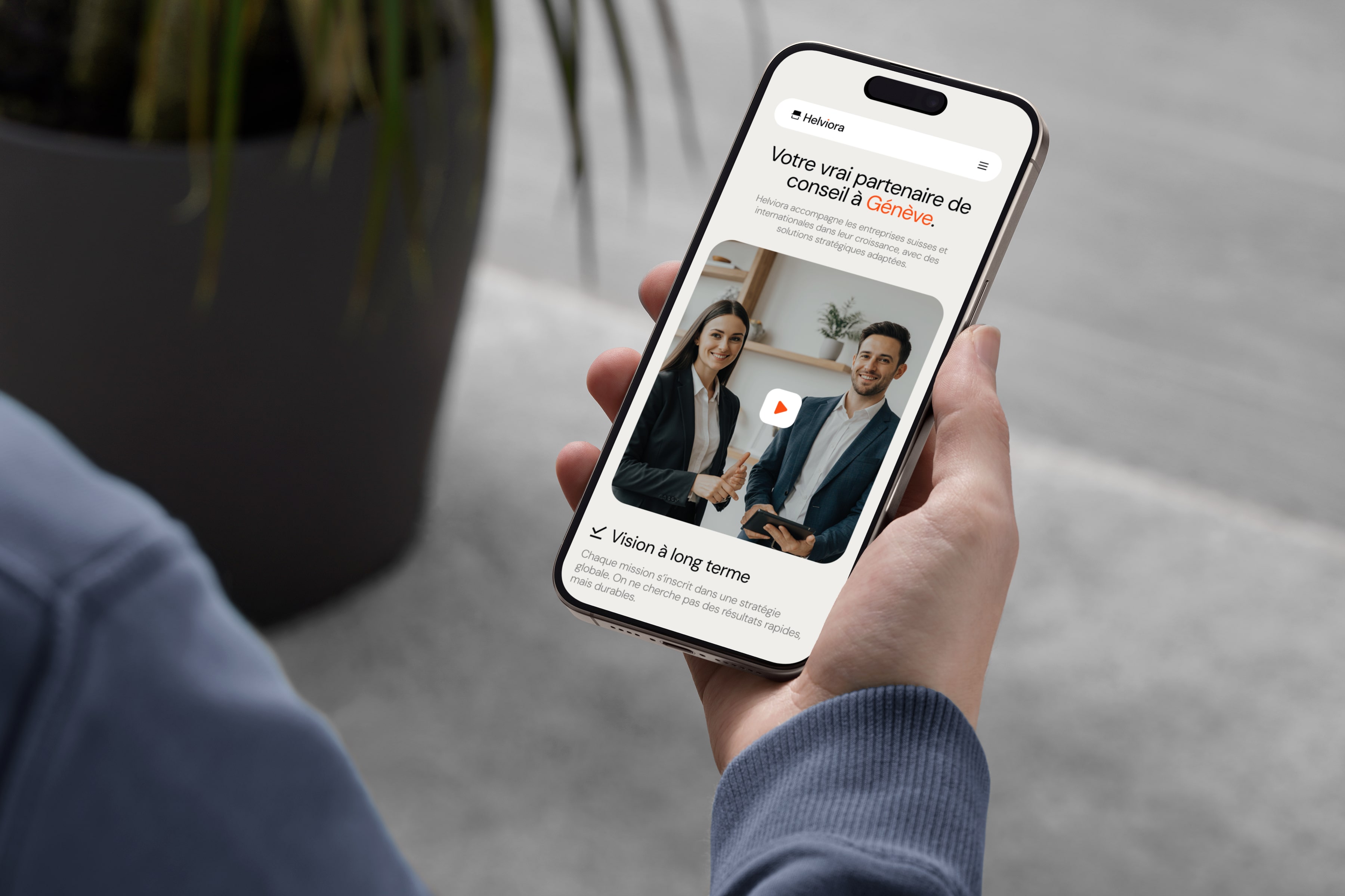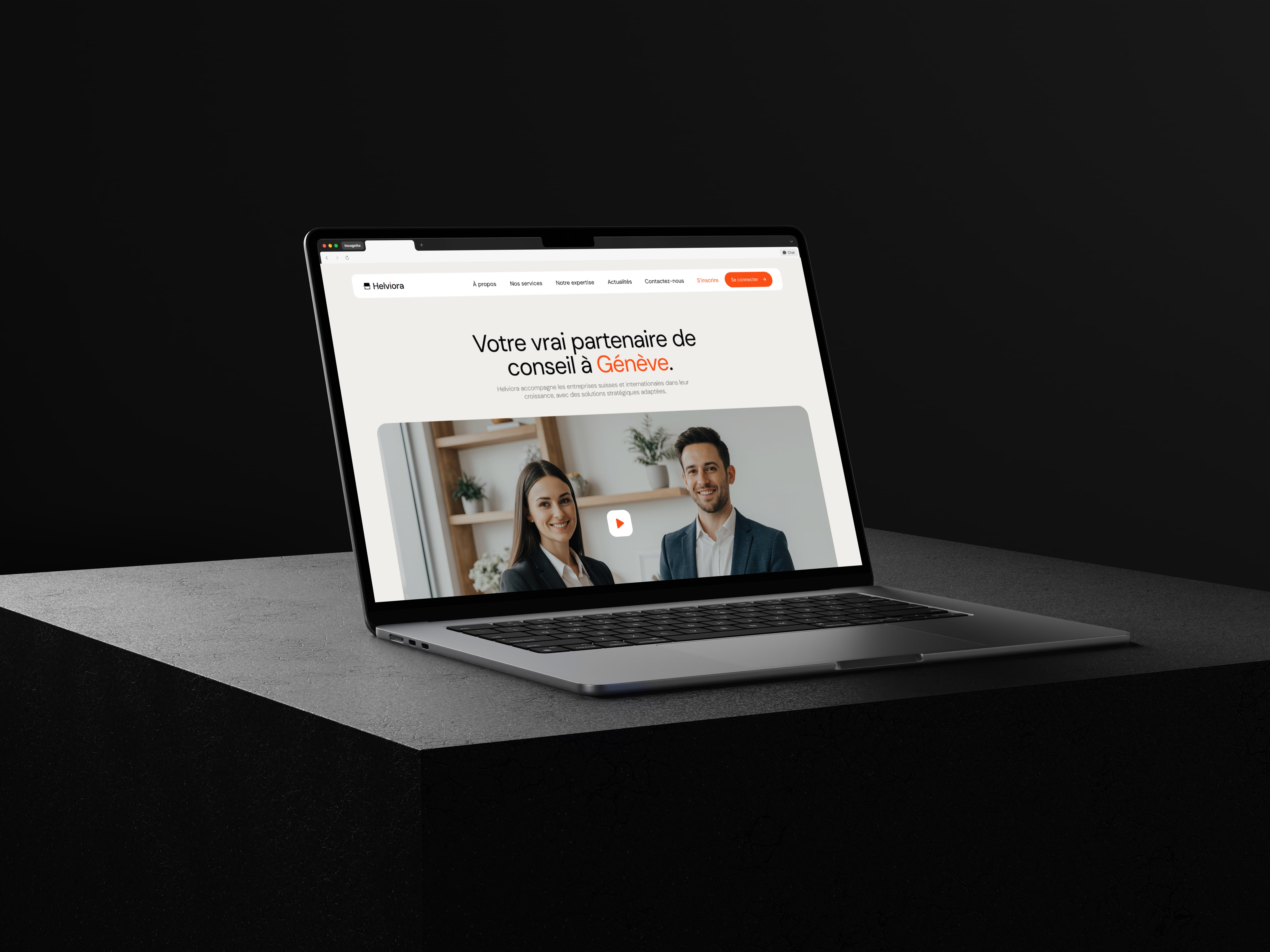 Helviora accompagne les entreprises suisses et internationales dans leur croissance. Le site devait inspirer confiance tout en illustrant leur vision stratégique et humaine. Nous avons créé une interface claire, moderne et accessible, soutenue par une identité colorielle chaleureuse. Les typographies franches et les visuels authentiques participent à renforcer leur positionnement : un partenaire de conseil à la fois expert, engagé et profondément ancré dans le territoire suisse.